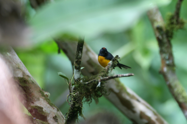| ↓サラピキを出発してボスケ・デ・パス に行く途中Cinchonaというところの峠のレストランで結構鳥見が出来るとのことで寄りました。 | ||