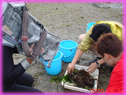 ←土曜日小雨が降ったり止んだりの中を家族ずれの方たちが雨具をつけて潮干狩りに来られました。中には鳥取県や島根県から来られた方もいらっしゃいました。 | |