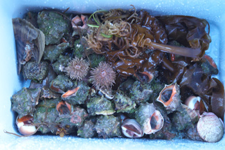 | ↓最後に行って最後に帰ってきました。 | ↓アカニシとバフンウニ、ワタリガニなど何人かの成果です! | ||
