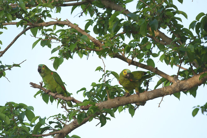 | ↓前の木にスミレコンゴウインコがいます。 | ||