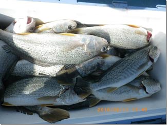 メバル、カサゴは朝イチポロポロ釣れましたが・・・中盤から悪くなりメバル多い人で17匹前後カサゴ多い人で20匹前後後半はカサゴのお土産にしました。真鯛、スズキジギングは朝アタリが少なく、しばらくしてからアタリ連発!! 中盤から後半にニベを狙いに変更して皆さんでニベ53、ハネとスズキ26、真鯛2枚釣れました!! ハネ、スズキ、真鯛は皆さんジグ初心者・・・船長も初心者です!!今後も新しい試み(真鯛、スズキジギング)頑張って参りますので宜しくお願いします。 |