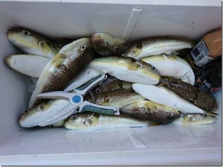 ショウサイフグは朝からポロポロと釣れます・・・地合いが短く、その後はポツポツと拾いながらの多い人で30匹前後にフグ以外の魚も遊んでくれました。 タイラバは先日に比べ、アタリも少なく苦戦・・・若い女の子達も顔が見る事が出来ました。 |
